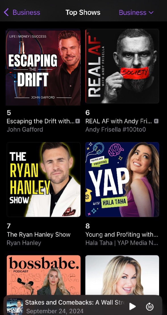 Escaping the Drift with John Gafford, part of the True Native Media family of podcasts, is a top 20 podcast under the Business category with over a million monthly downloads per episode and a massive reach over social media.